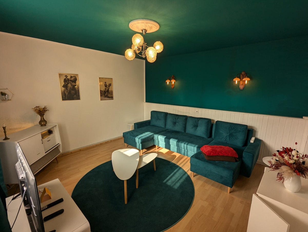 Entspanne dich (mit Freunden oder Familie, wenn du magst) in dieser friedlichen Unterkunft fernab der Großstadt. Die lichtdurchflutete, geräumige Wohnung ist ein idealer Ort zum Durchatmen & Erholen für Individualreisende, aber auch für ein geselliges Miteinander in der größeren Gemeinschaft. In den Schlafzimmern ist Platz für 5 Personen, zusätzlich könnten bis zu 2 Personen auch auf den Sofas im Wohnzimmer schlafen. Spülmaschine, Waschmaschine & Badewanne vereinfachen das Leben & Loslassen ...