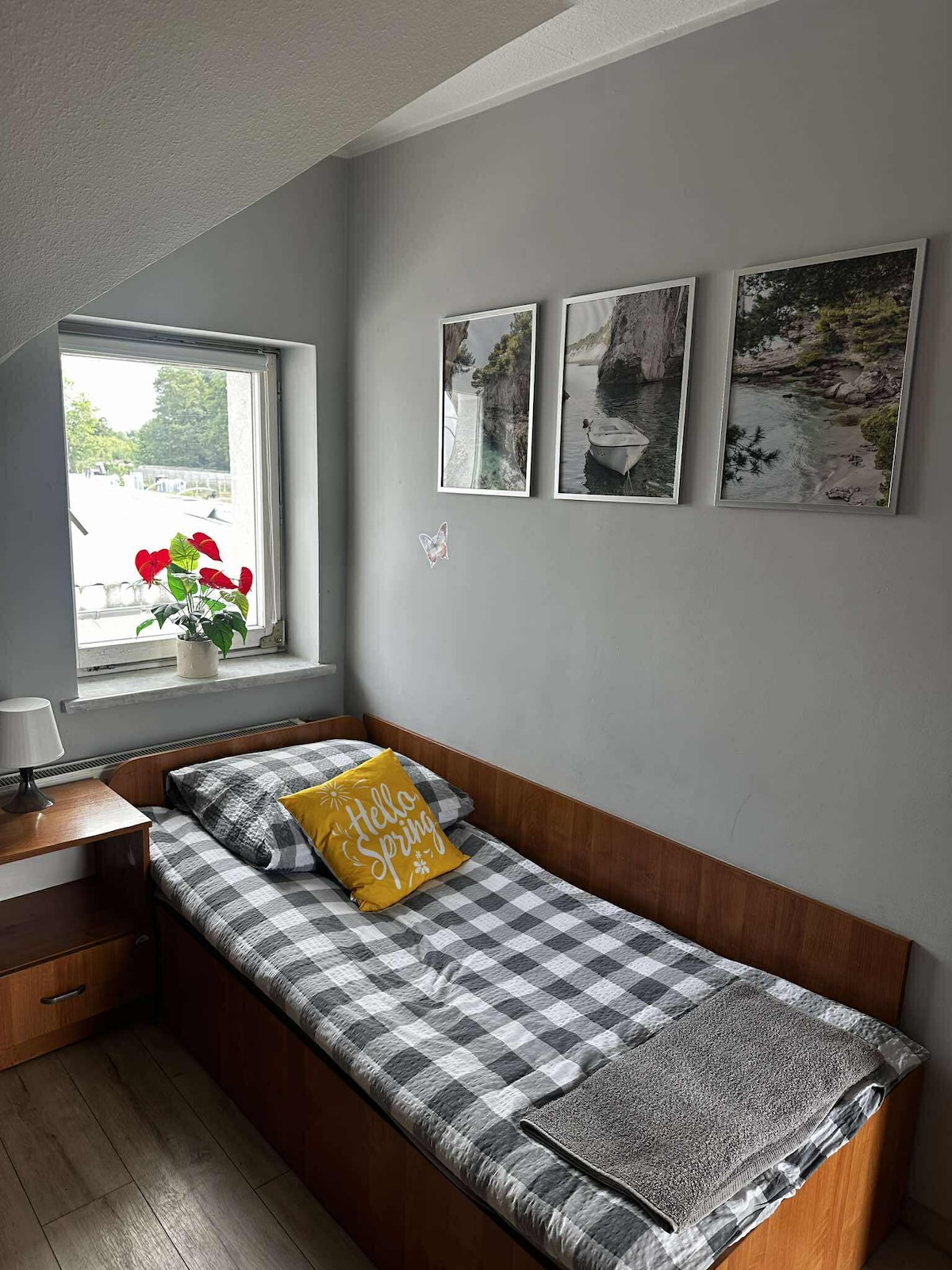 這些寬敞寧靜的室內裝潢,忘記您的煩惱。 標準房間,兩張單人床和一間浴室。 房間位於大樓的一樓。 一樓還有一間標準房間,配有獨立浴室。走廊上有一張桌子和一套茶具。 在寧靜中,您可以坐下欣賞森林和周圍大自然的美麗景色。 期待你的光臨
