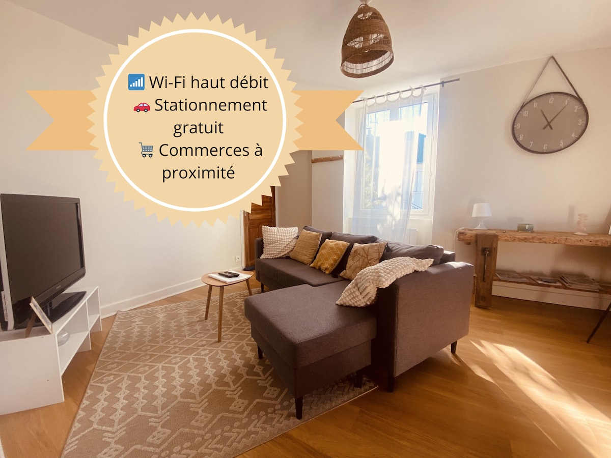 享受全新、優雅且地理位置優越的住宿。 這間翻新的兩房公寓包括一間臥室、一間客廳/餐廳、廚房和帶廁所的淋浴間。 步行 15 分鐘即可抵達大教堂,步行 5 分鐘即可抵達體育場,您可以享受所有便利設施。 無論是上班族或度假者,您都可以使用私人入口和免費停車位。 根據要求: - 可以將您的兩輪車停放在封閉的車庫中。 - 設置和準備第二張床(如果有 2 張獨立的床)。