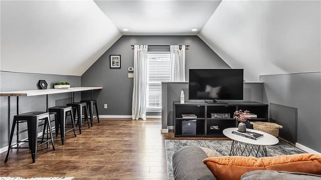 This reimagined century-old property features a gas fireplace with wood-panel surround, home office workspace, tiled bathrooms, hardwood flooring, and plenty of space to relax. Cook in a refurbished kitchen of quartz countertops and stainless-steel appliances, and truly find yourself at home away from home. This property includes 2 bedrooms: 1 king, 1 queen. Parking is available on the street, with no extra cost or pass required.