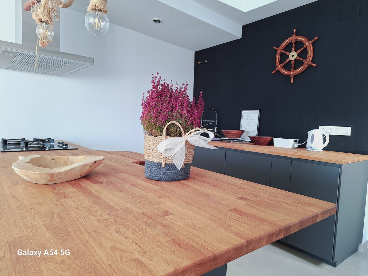 全新的頂層公寓,位於新建的建築中,配有電梯,門口有很多停車位,步行五分鐘即可抵達市中心。 兩間臥室和一間浴室、三層玻璃、地暖、電動百葉窗。 全套燃氣廚房,配有巨大的木製臺面,配有烤箱、微波爐、洗碗機、洗衣機、烘乾機。 8張餐桌、跑步機、Wi-Fi和露臺,可欣賞到阿爾哈馬各地的全景。