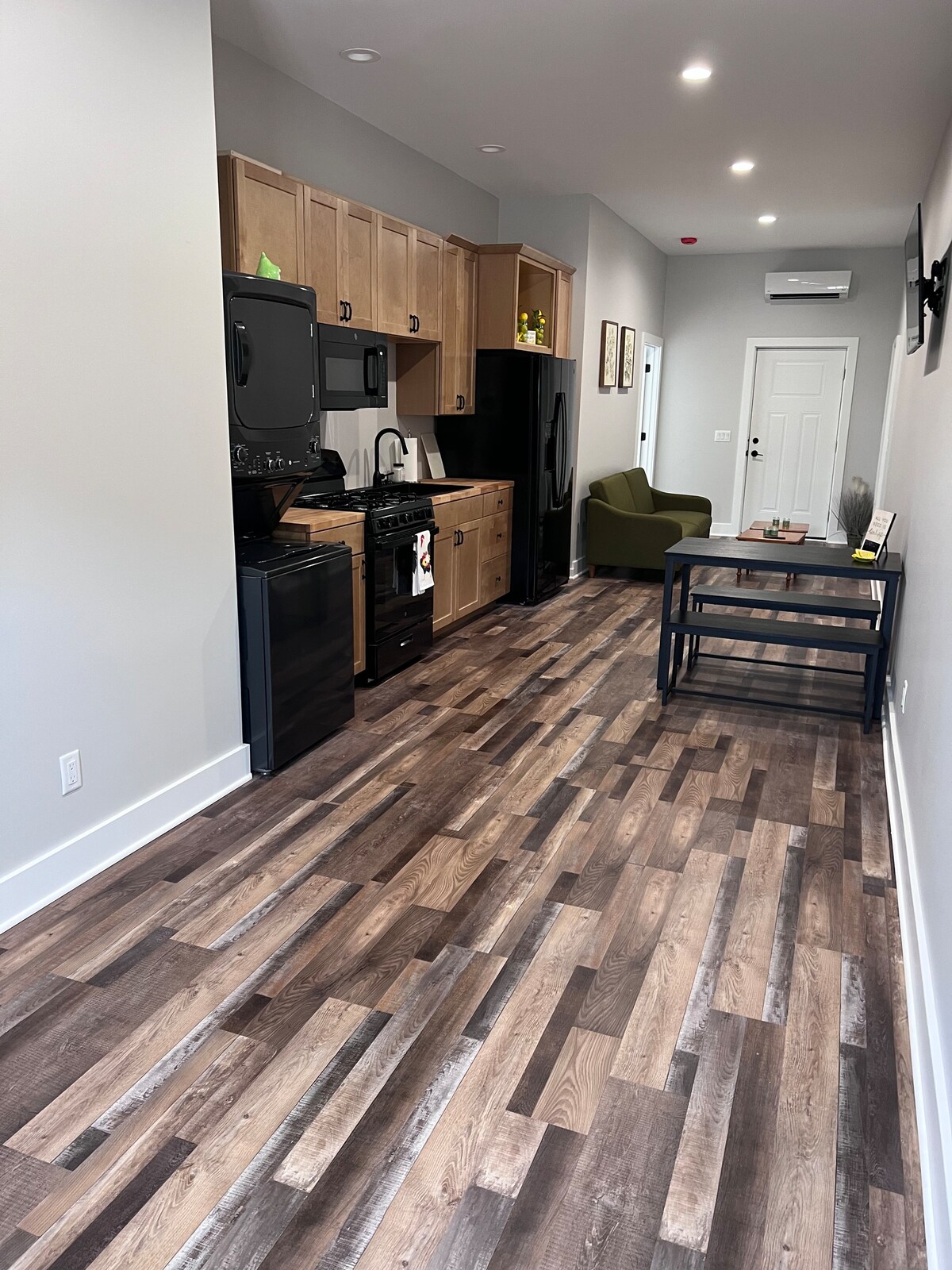 Entire home with A/C, hot tub & fireplace. Three bedrooms-main floor master w/king bed, two bedrooms upstairs w/queens. One full bath on main floor w/jetted tub, and a full bath upstairs w/shower. Fenced-in backyard with hot tub, patio and fire pit areas. About 4 blocks from downtown- walk/bike to Lake Michigan, restaurants, breweries, etc. Short drive to Ludington State Park, Pentwater, and Silver Lake. WIFI, Roku, bedding, towels, Coffee maker for both pods or standard pot, crockpot, & more.