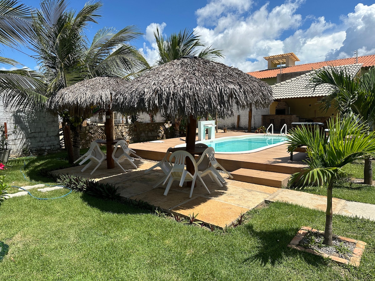 我們位於Cajueiro da Praia ,位於Piauí (巴西)海岸,距離海邊300米,距離Barra Grande-PI 9.8公裏,高標準房屋內有5間臥室( 3間套房)、遊泳池、燒烤、壁爐、海灘網球場和一名管家,可供清潔和烹飪服務。 非常適合那些喜歡風箏衝浪帆船和/或想在Barra Grande-PI天堂與親朋好友一起度過美好時光的人。