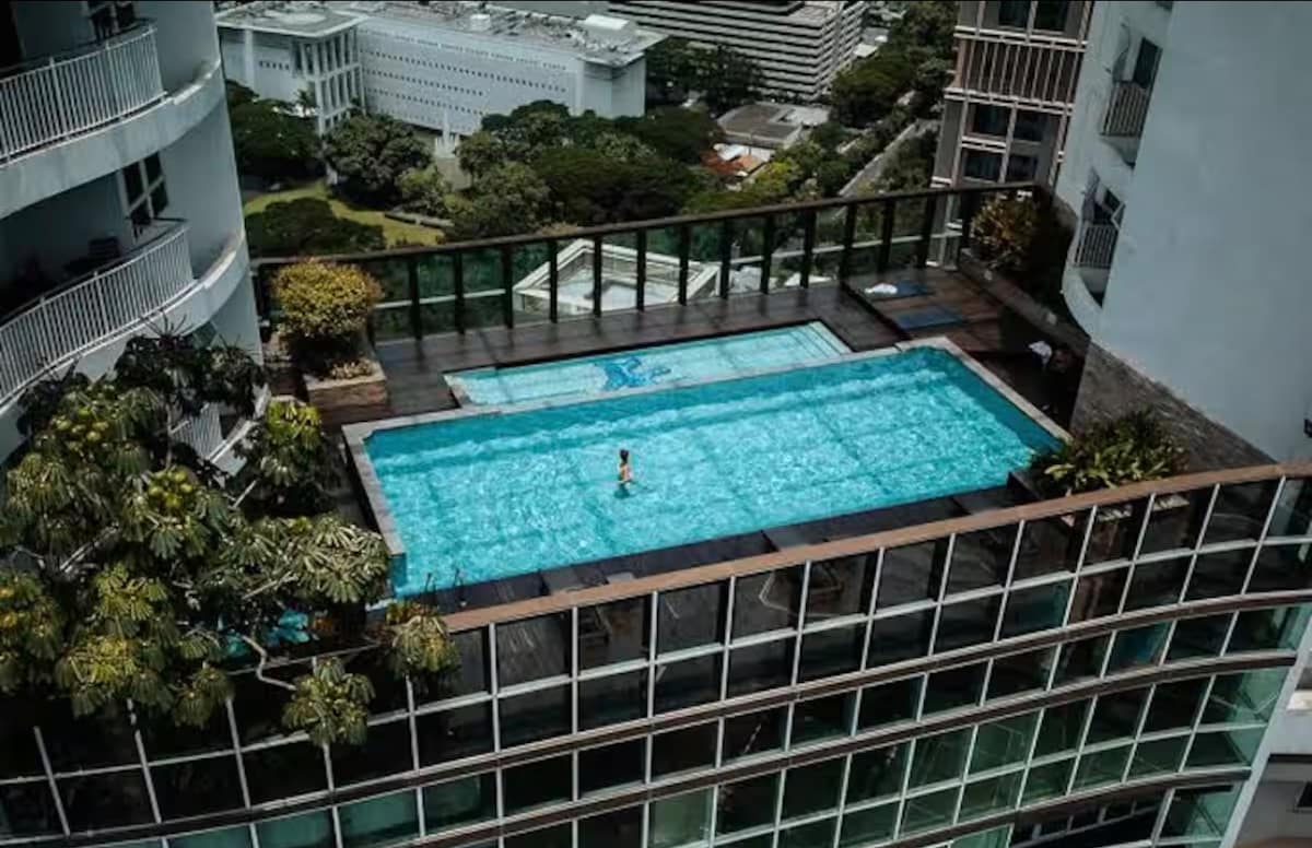 欢迎您! 所有客房均为我个人持有物业,非转租房东,您可以放心自身的安全及隐私。 本公寓为24小时安保豪华高端智能住宅,交通极为便捷,所处素坤逸繁华闹市区。 套内面积47平米,可供2-3人居住,配备独立卫生间及厨房、阳台,空间宽敞。 虽处繁华闹市,但内外全天均极其安静。 房间内配备了全套高端家用电器及相关必需品,独家配备1000兆高速宽带。 你可以自助使用房间内的所有设备及用品,并免费享用公寓顶层的摩天楼无边泳池、健身房、屋顶花园。 所有客房的配置及装饰均完全统一,并由高端专业家政人员负责清洁。