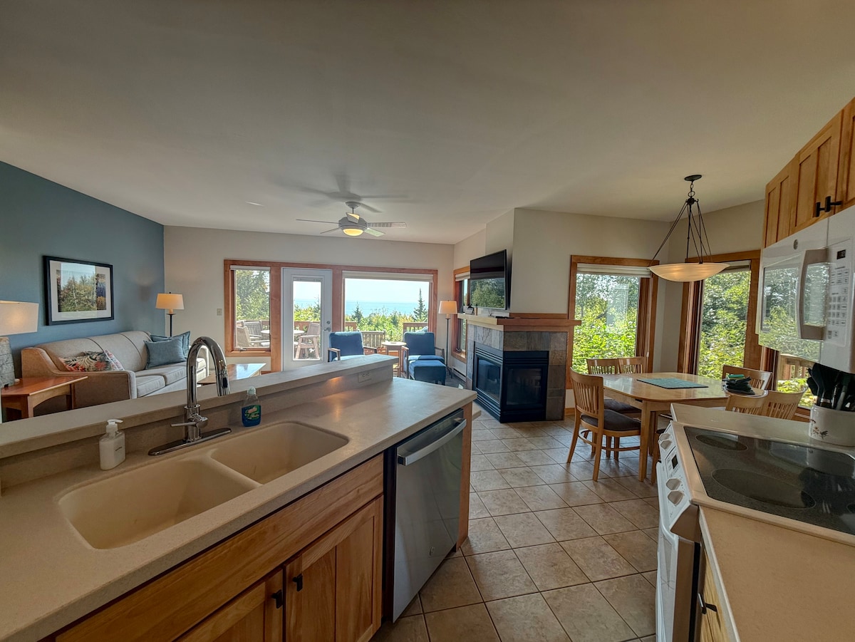 位置: Tofte, Mn 位於Chateau LeVeaux Resort東翼,「Moose Condo」已更新,可供享受! 公寓內有超過250隻麋鹿。 試著計算一下! 在設備齊全的廚房準備早餐,在燃木壁爐的火邊放鬆身心,或坐在露臺上欣賞距離蘇必利爾湖僅幾步之遙的日出。 您無法超越這個景觀! 玻璃滑動門打開,可進入露臺,欣賞Superior湖的美景。
