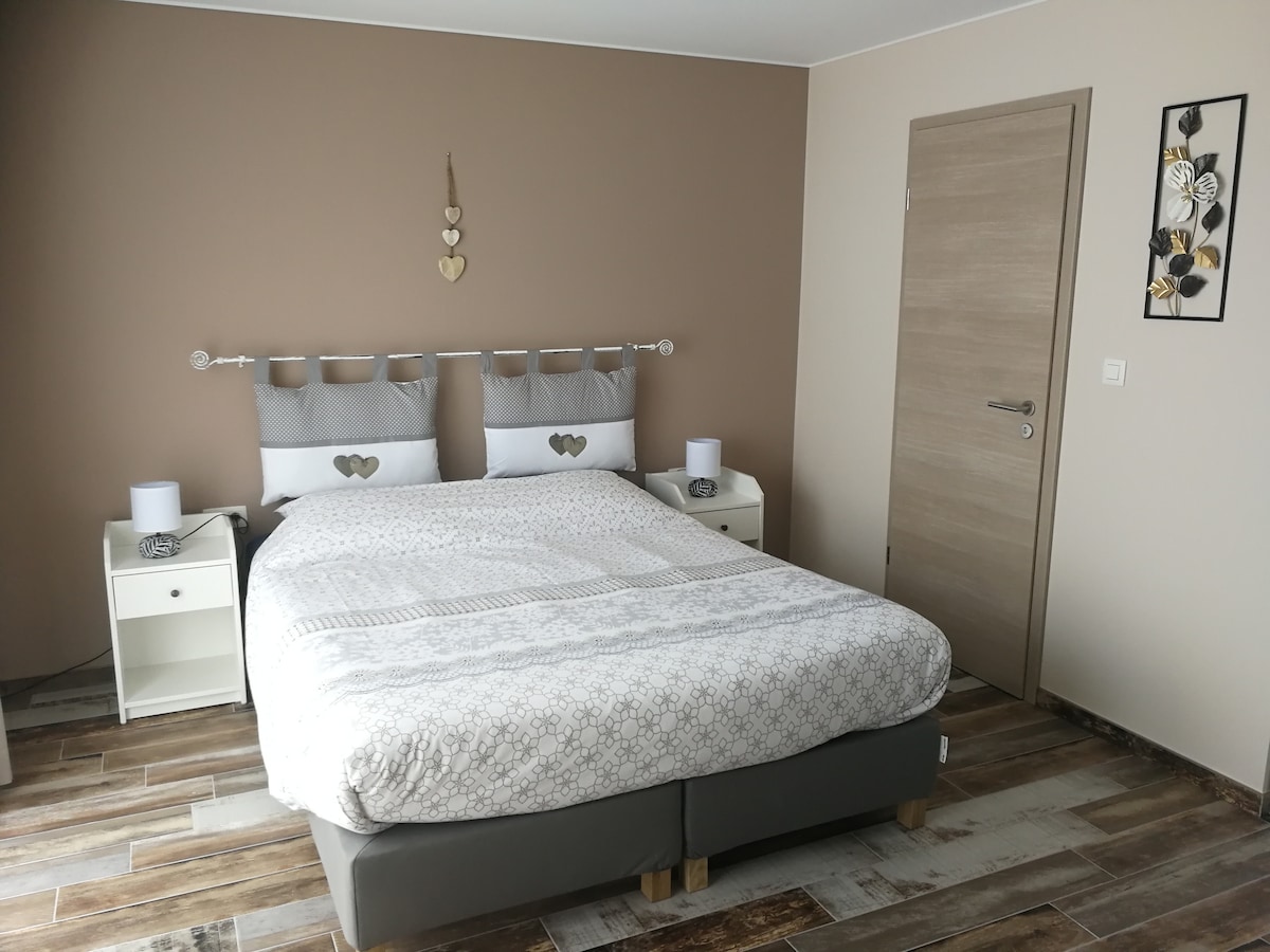 新建房子裡舒適出租的房間。 套房衛浴。 自行車位於封閉車庫內。 安靜的地方,大花園,果園,徒步道可直接從房源進入。 距離巴士站600米:平日巴士前往盧森堡 距離盧森堡自行車道2.5公裏,以及前往盧森堡的免費巴士(每小時一次)。