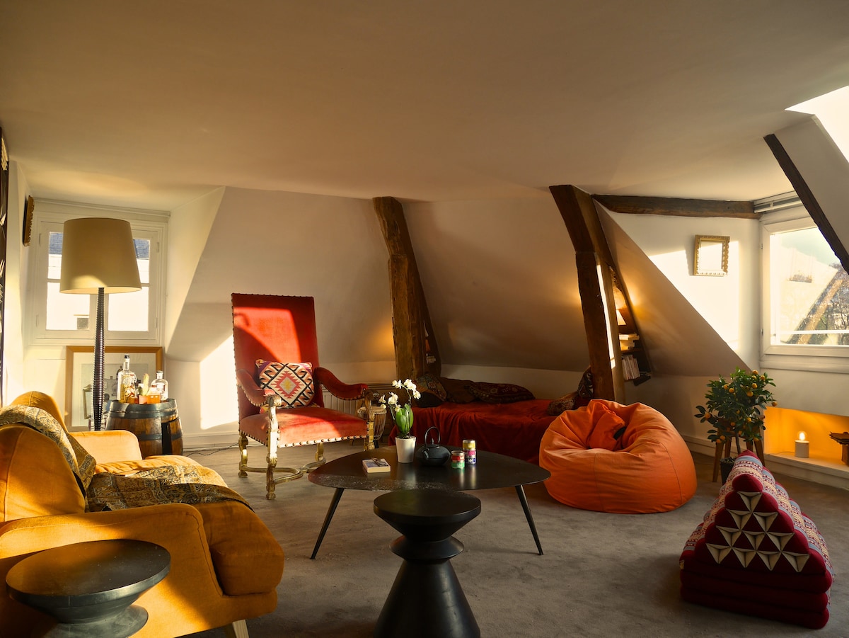 是的,這正是從您的窗戶看到的景觀。來巴黎享受獨特的早餐,面對巴黎家中的巴黎聖母院,皇家FLEUR DE LYS。 看著塞納河和屋頂,太陽在巴黎聖母院後面逐漸消失,天空變成50種紅色,你不會想離開。 要前往您位於3樓1臥室的房源,有12個階梯通往電梯,這在光之城中心地帶有400年歷史的建築中是罕見的。 魅力是它的第二個名字。