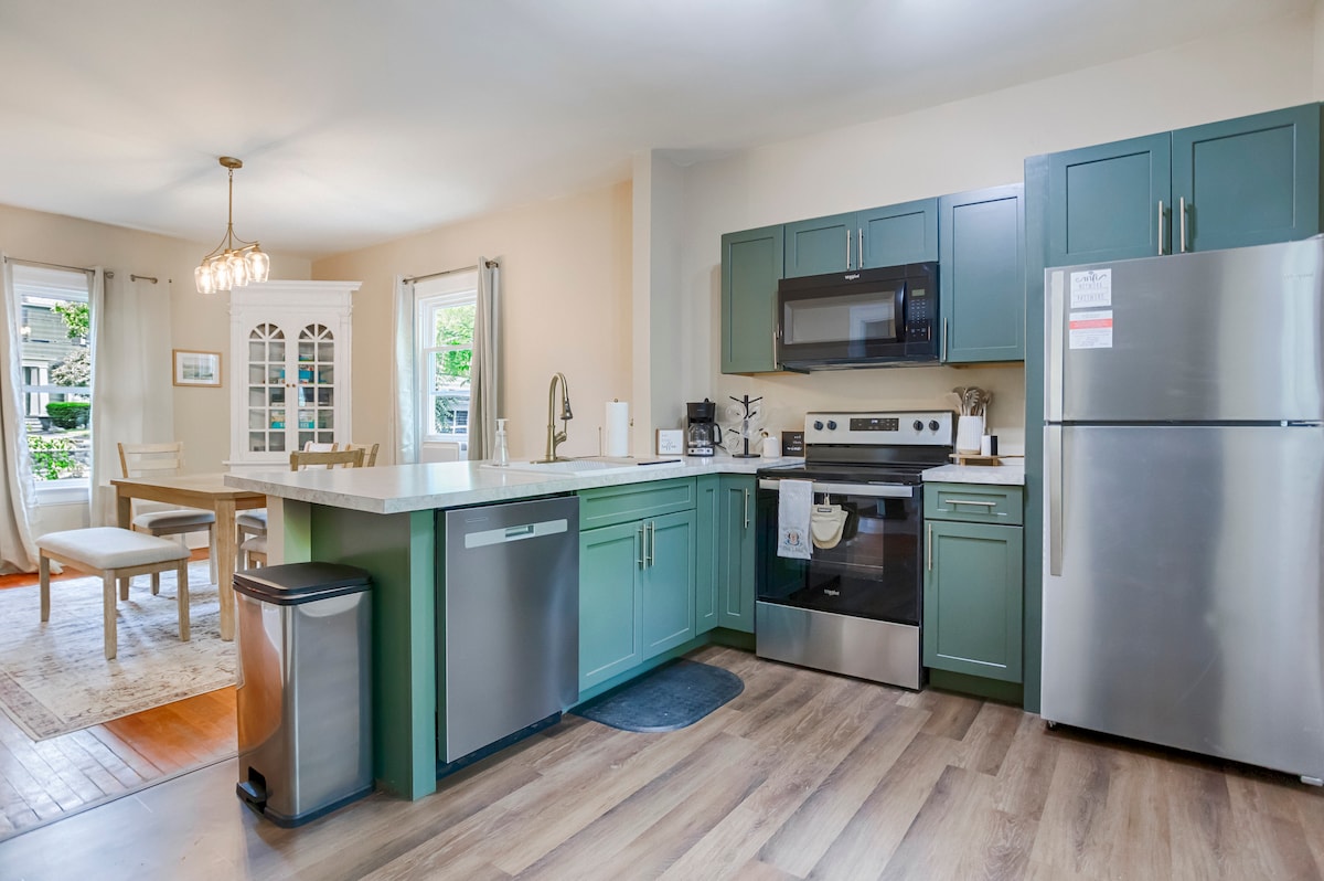 入住這間位於市中心的公寓,享受時尚體驗。 位於日內瓦市中心的新裝修單位。 步行即可抵達Hobart和William Smith Colleges、Wegmans、咖啡店等。 Finger Lakes葡萄酒之旅的完美地點。 一間寬敞的臥室,配有大牀。 腳凳拉出至雙人牀,可提供額外的睡眠住宿。 設備齊全的廚房,可滿足您長期住宿的需求。 坐落在一棟維護良好的美麗歷史住宅建築的一樓。