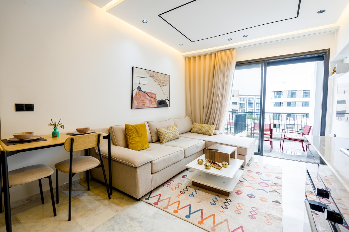 Appartement NAOMI – Un cocon moderne et luxueux en plein cœur du quartier Les Princesses, à deux pas du Stade Mohamed V. Avec sa literie haut de gamme, son design raffiné et son confort absolu, cet espace élégant promet un séjour chic, serein et inoubliable à Casablanca. Parfait pour un séjour calme pendant le Ramadan au cœur de Casablanca