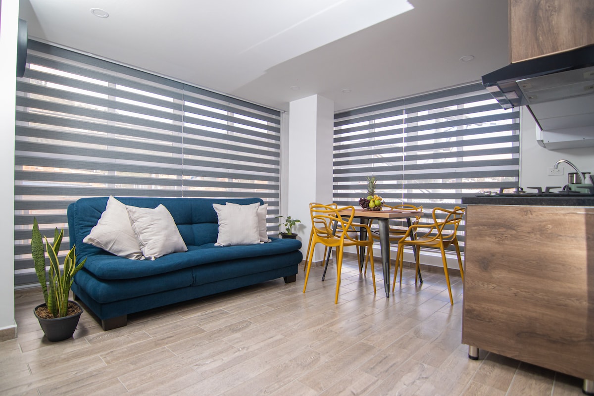 Immerse yourself in the warmth and brightness of our charming apartment, a space designed to provide you with an unforgettable stay. With a loft-style layout, this space offers everything you need for a comfortable and enjoyable stay. In addition to its coziness, the apartment is located just a few meters from prestigious hotels like the Hilton, JW Marriott, Four Seasons, right in the heart of Quinta Camacho and Zona G. Here, you’ll find a variety of restaurants, bars and cultural attractions.