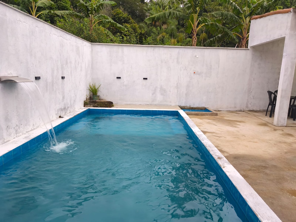在這個安靜的住宿中與全家人一起放鬆身心。 美麗的房子,位於Serra Macaense ( Óleo/Glicério ) ,可通往瀑布。 房子由4間臥室組成,包括3間套房和室外浴室、帶可伸縮沙發的大客廳、廚房、燒烤區域、泳池、餐桌、吊牀、可容納6輛車的空間、WI-FI等。 地理位置優越,商業步行即可抵達。