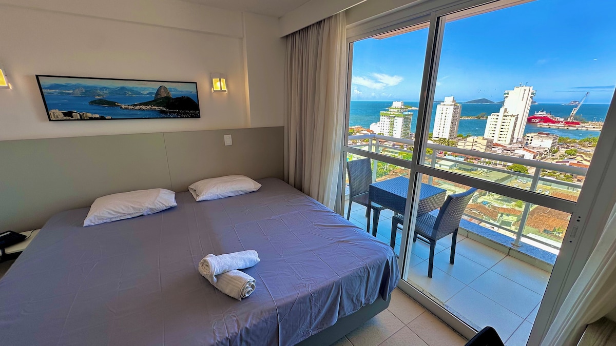 在我的舒適且設備齊全的公寓中感受家一般的舒適! -自助入住,無需鑰匙 - 50 吋智慧電視和 Netflix -洗衣機和烘乾機 -設備齊全的廚房 -公寓內有健身區 - 陽台 - 24小時保安 - 1 個停車位(每次住宿 15 雷亞爾) -大樓前面就有自助餐廳和麵包店 > Cavaleiros 海灘 5 分鐘 >購物廣場5分鐘 >市中心10分鐘 最多可接待2隻寵物!