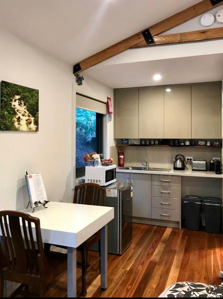 Escape and relax in this cozy forest cottage nestled amongst the gumtrees. This is the prefect location for bushwalks, mountain biking, winery visits or the other wonderful attractions this area has to offer. This cottage suits singles or couples (infant). This private cottage has all the modern amenities you need. Outside you can find a bath tub , BBQ, and seating. Inside there is a woodfire (provided w/ wood), queen bed, TV, fully equipped kitchen incl. coffee machine. Bathroom w/ shower.