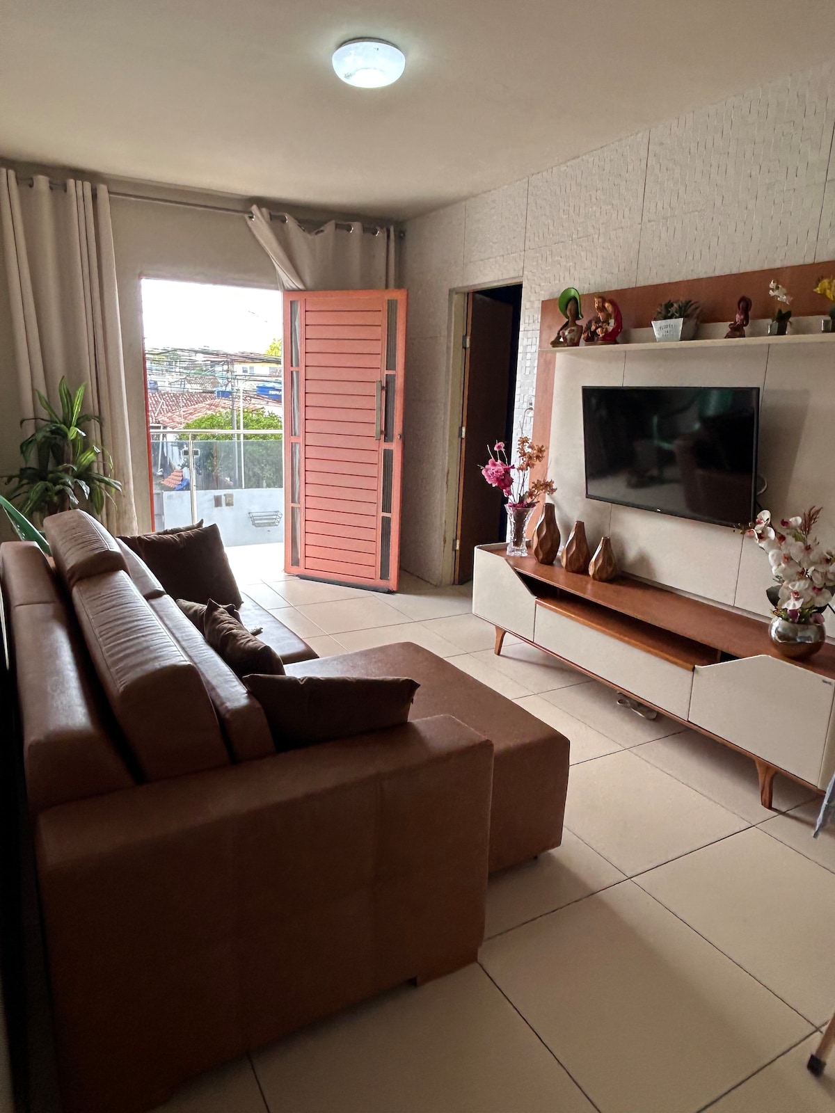 在這個安靜的住宿中與全家人一起放鬆身心,臥室有空調,陽臺和臥室有吊牀, WiFi ,牀和客廳有電視,廚房配備您需要的一切(冰箱、微波爐、三明治機、咖啡機、碗盤、玻璃杯... )。 家庭環境,靠近機場和阿拉戈斯聯邦大學( 10分鐘)。入住和彈性退房,前提是它已經安頓過。 當地安全和 24 小時禮賓服務。 Supermercado和附近的麵包店。 開車10分鐘即可抵達Parque Shopping