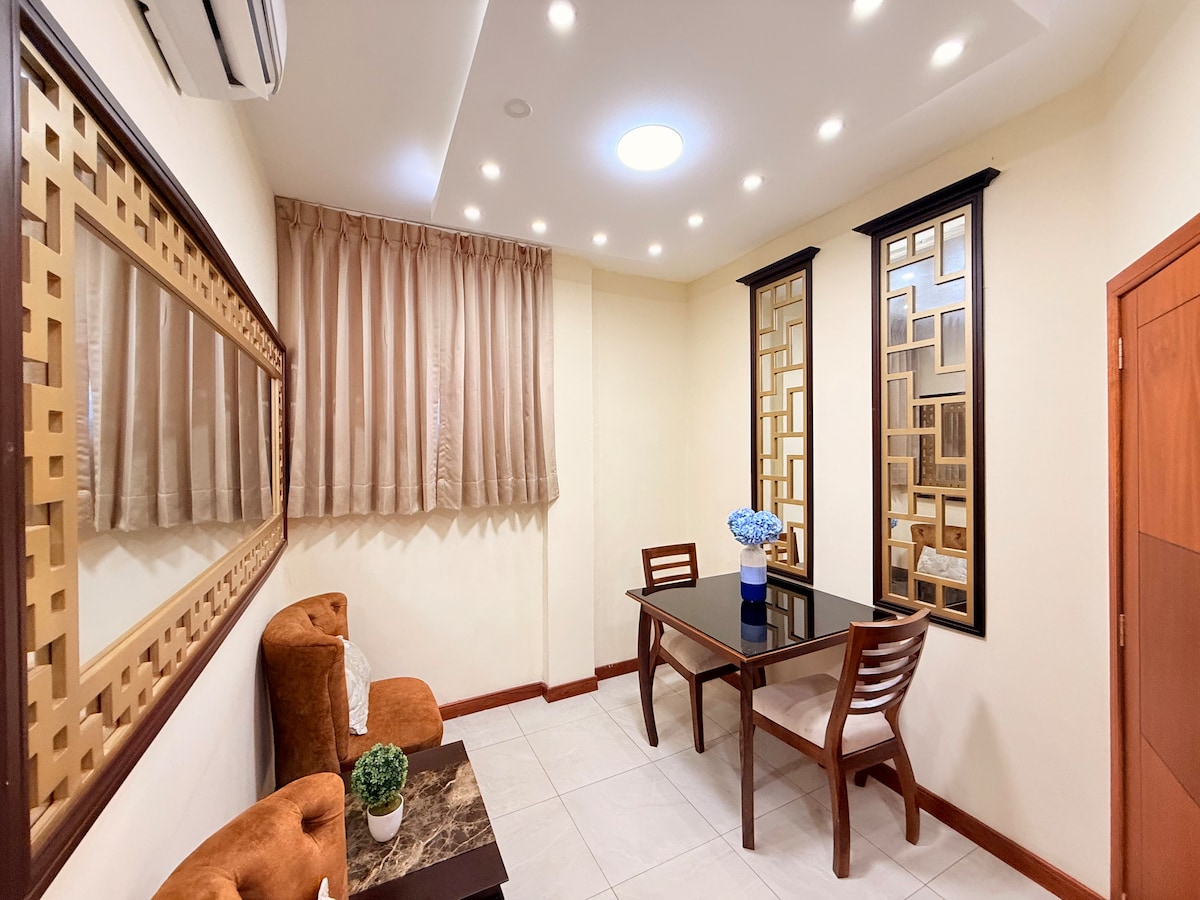在這個位於二樓的安靜而優雅的空間中放鬆身心,靠近商場和酒店區、醫療中心,最重要的是,您可以步行前往您的活動,因為它位於城市和非常安全的區域。我們為您提供價格非常實惠的交通服務