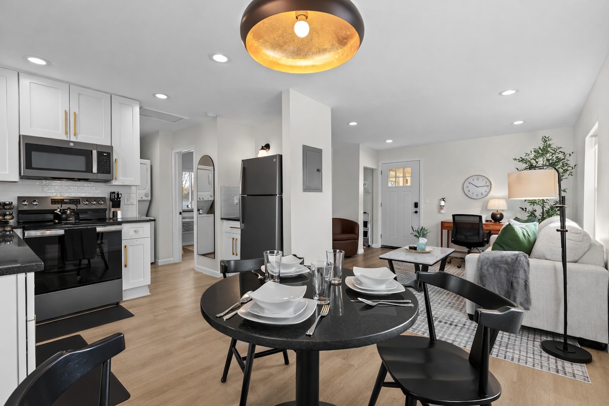現代舒適的 1 間臥室上層公寓 | 特大床 + 洗衣房