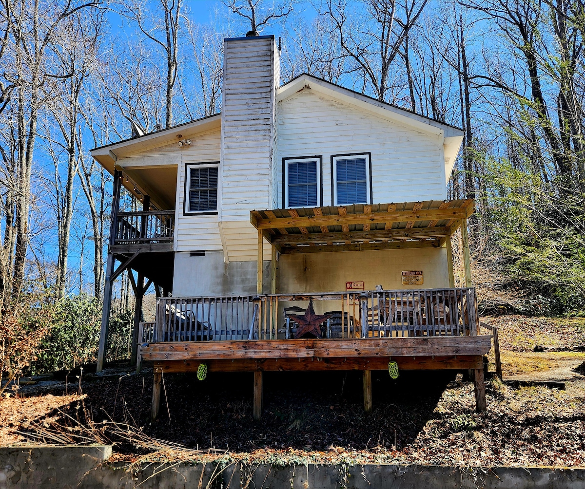 Welcome to the High County mountain cabin in Franklin N.C. Located 10 min. to town at the foothills of the Smokey Mountains .Dillsboro, Sylvia, Bryson City, Cherokee and Helen G.A. all with in 45min. Cabin has lodge décor with 1 Queen bed, full bath, kitchen and Livingroom . Kids can also camp in the Livingroom with sleeping bags. We provide all house hold items and linens so just bring your bag for a fabulous getaway!