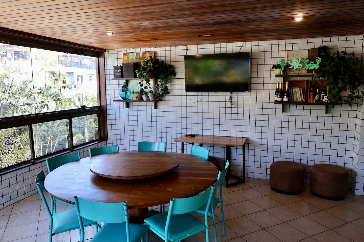 這間舒適的公寓距離海灘5分鐘路程。 在沙灘上玩了一天後,非常適合放鬆身心。 廚房設備齊全,陽臺是休息的理想場所。 為了您的方便,我們還提供2張沙灘椅和1個日光浴攤位,讓您盡情享受一天。 附近有超市、海灘、餐廳和當地景點。 如果您想尋找地理位置優越、舒適、可輕鬆前往Grumari、Recreio、Barra de Tijuca和南區等海灘,這是理想的地方!