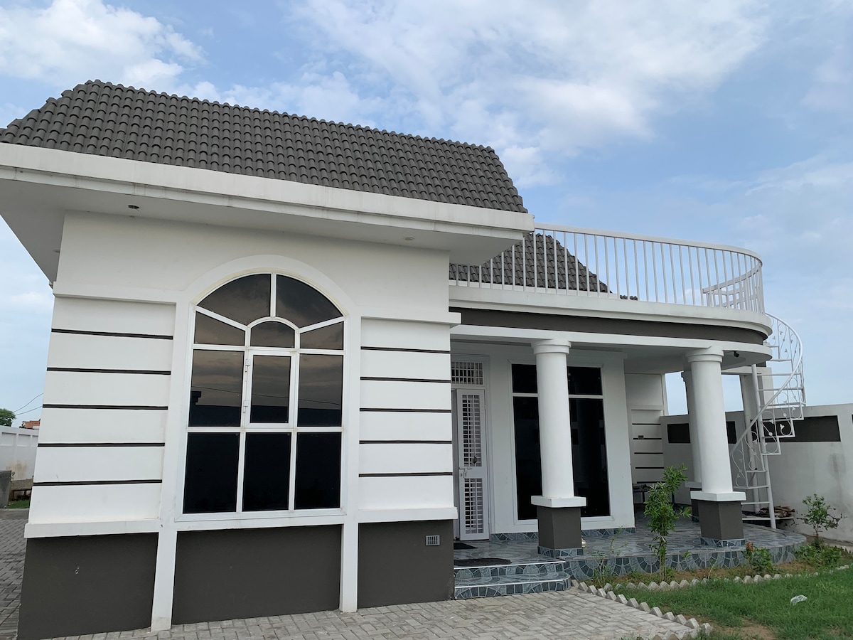 Sialkot City Housing的現代豪華房源 這間豪華別墅非常適合來巴基斯坦的家庭或一群旅客入住。房源全新且乾淨。配備家庭所需的所有設備與服務。也有UPS備用電源。 4 間臥室 - 3 張特大雙人床 - 2 張單人床 4間浴室,每間臥室均設有淋浴間 2間配有瓦斯爐的廚房 冰箱和微波爐 2間客廳 智慧電視 Wi-Fi 沙發、餐桌、全新床單/床單和毛巾、洗漱用品、肥皂
