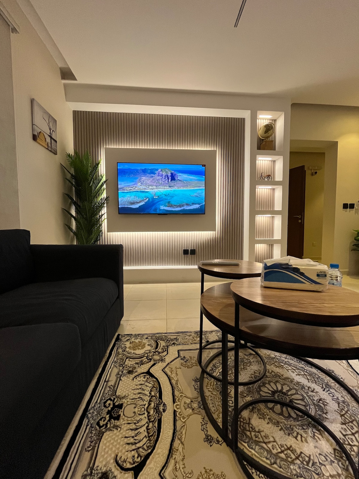 位於高級社區的整套單間公寓 5G 網路 65 吋大型智慧螢幕 完全私密的自助入住/退房 靠近城市的所有景點 附近最著名的景點(開車 5 分鐘): 兩聖清真寺 壕溝和七座清真寺 蘇丹娜路和環形路 泰巴伊斯蘭大學 法赫德國王醫院 法基赫醫院 瓦迪阿基克步道 財政部、天課管理局和食品藥品管理局分部(幾步之遙) 距離聖地 11 分鐘,距離烏胡德山 14 分鐘,距離庫巴清真寺 16 分鐘 可提供私人車輛和司機。 機場接送服務。