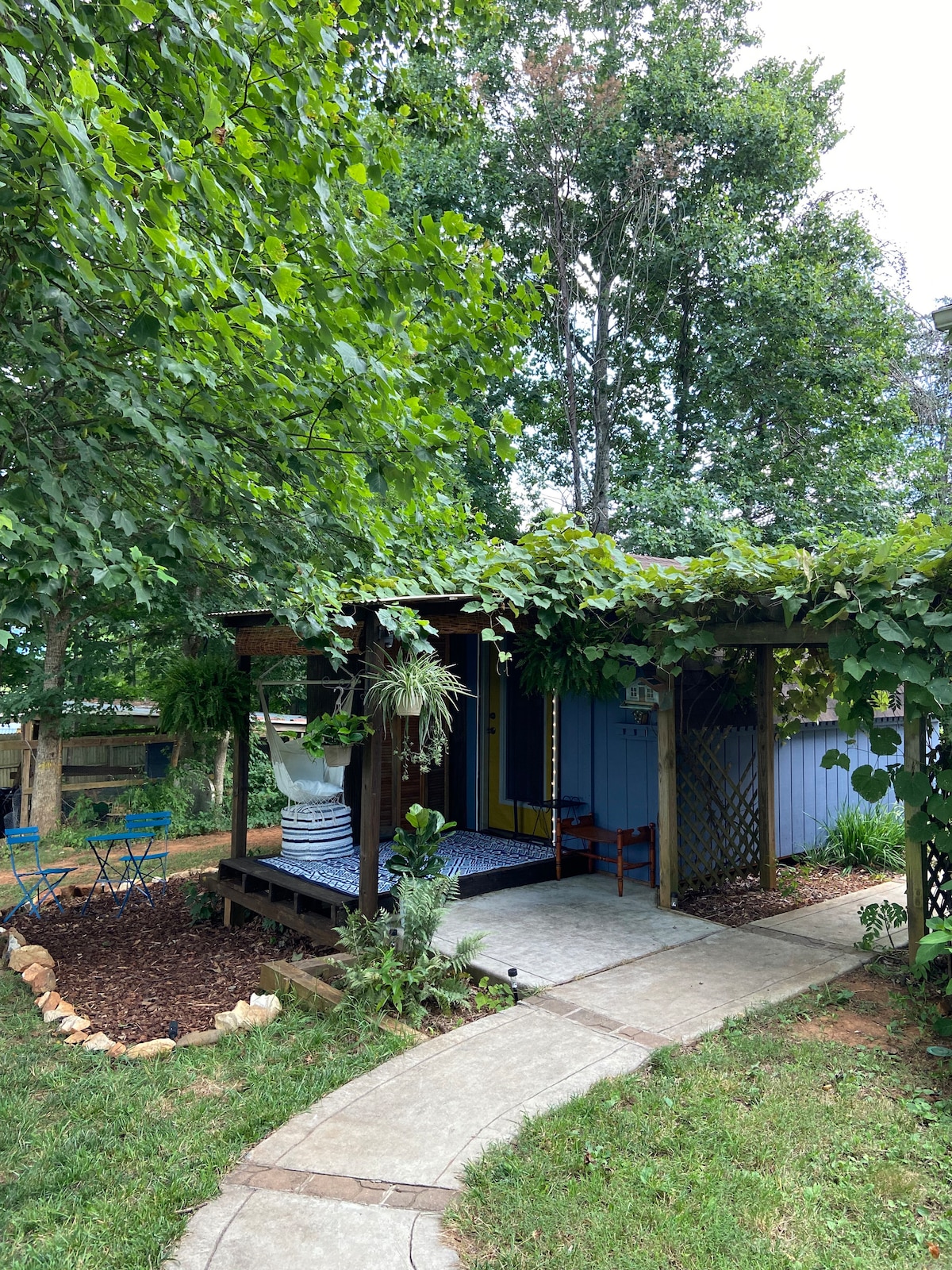 Enjoy the lovely setting of this secluded retreat, nestled in nature. We have gardens and friendly animals including goats, chickens, and ducks. You’ll enjoy total privacy with a fully fenced yard, private entrance. The suite has been totally remodeled and decorated in a moody, boho casual style. You will be ultimately comfortable at this special property.