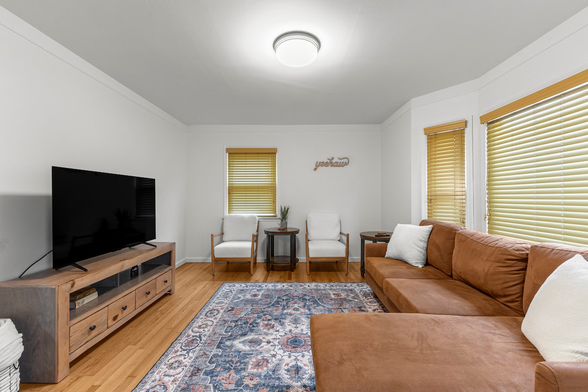 在2023年9個月內精心翻修的4牀中世紀天堂,探索寧靜! 在配備75英寸電視和壁爐的罕見超大客廳放鬆身心,在儲備齊全的架子上玩桌遊,創造珍貴的回憶。 享用燒烤爐,在涼亭下享用戶外用餐,或在全新的廚房中烹飪美食。 沉浸在金色的淋浴間,在沙漠後享受奢華的清潔! 在這個位於皇家橡樹邊境的安全、安靜的郊區,您的完美度假勝地正等著您!