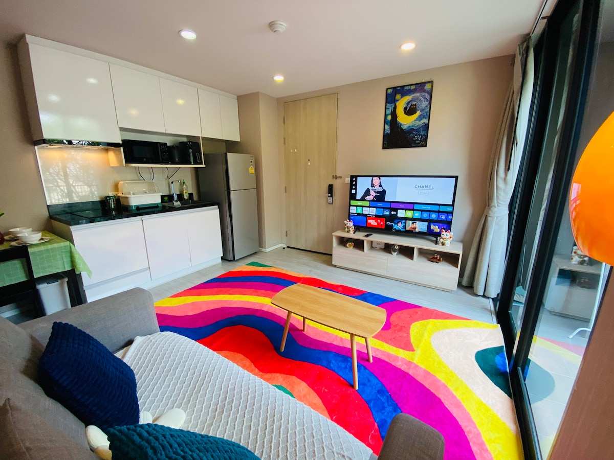 这是一栋2022年底交付的全新超豪华酒店式公寓,位于清迈市中心,热闹的清迈夜市附近,公寓装修奢华时尚,设计新颖独特,堪比五星级酒店,内有全泰国150米最长的高空花园无边泳池,高空玻璃健身房、日式桑拿房、蒸汽房、公共阅读室、会议室、刷卡电梯、电子密码锁,公寓周边有很多当地小餐厅,马路对面就是Curve Community &Education Mall 有KFC、711便利店、咖啡厅、屈臣氏、洗车店、搏击馆等,非常方便。 靠近塔佩门,步行到热闹的长康路夜市 ,靠近滨河,周围很多网红特色餐厅和酒吧,咖啡厅西餐厅,spa。银行和货币兑换点,便利店7-11,中国餐厅等。 10分钟步行到夜市 1分钟走到KFC 1分钟走到7-11便利店 1-2分钟内有5家咖啡厅 5分钟坐出租车到古城区 15分钟坐出租车到机场 公寓外面随时可以叫到嘟嘟车和出租车,红色双条 房客使用权限 公寓内:客人可以使用公寓内的一切 公寓外:客人可以免费使用健身房,游泳池,桑拿房,蒸汽房,阅读室,会议室,空中花园 请把我的家当成您的家,请爱护公寓里面的物品像爱惜您自己家的物品 在这处时尚房源中,与全家人共享欢乐。