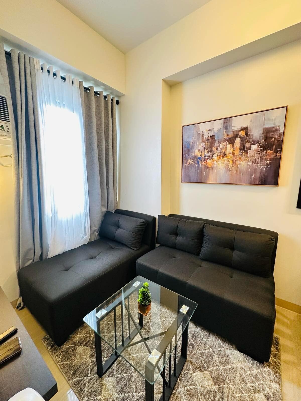1 bedroom unit located in VIVANT FLATS in the heart of the Alabang commercial area. 5 mins away from the Festival Mall, a stone’s throw away from Asian Hospital, and a 10 min walk away from ATC. Unit is tastefully appointed and situated in the upscale side of Filinvest City. Do you have a craving for Filipino food or find the need to practice your golf swings? There’s a Filipino restaurant and driving range right across. Everything is close by. Experience life in the steady South - Alabang.