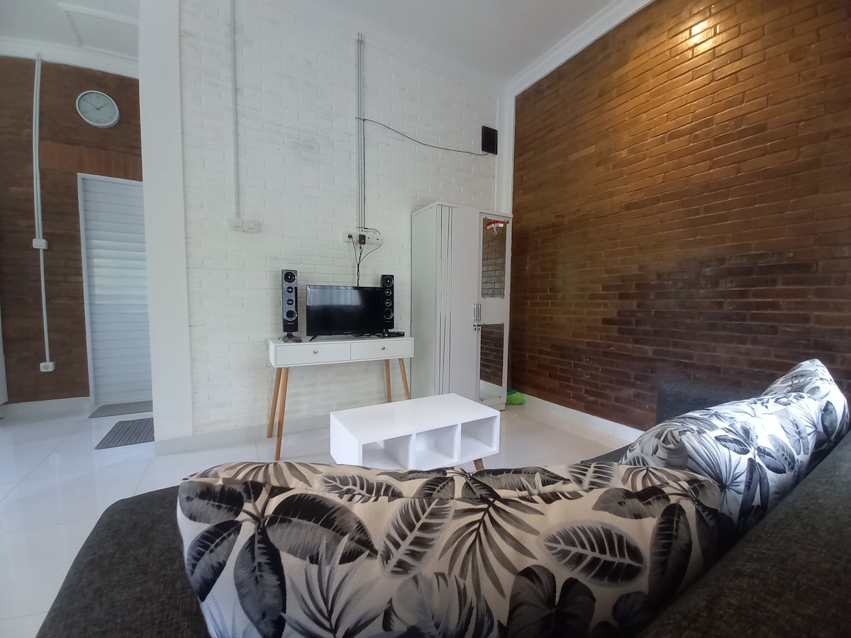 Jogja別墅,配有私人泳池和全套家具 地理位置優越,乾淨,清新,靠近主路和咖啡廳 大型停車位(Pajero、Fortuner、Innova) 規格: -臥室1 -浴室1 -私人迷你泳池 -廚房 -空調 -電力2.200瓦 -衣櫃+淋浴間 -熱水器 安全-安全 - 43 吋智慧電視 -加大雙人床(180X200) - WiFi -桌子、椅子、櫥櫃 平日:400K/天 週末:60 萬/天 STOK TERBATAS !!!必須提前預訂