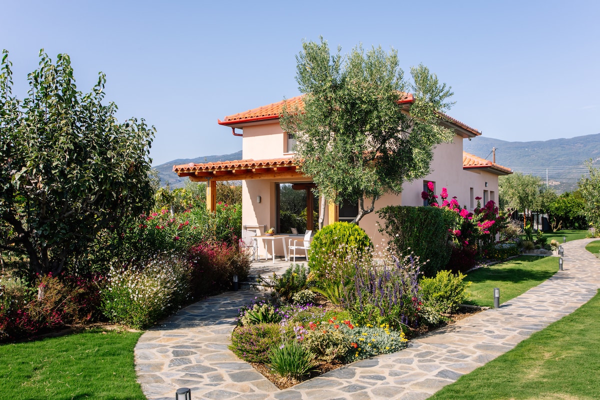 Right next to the beach at Kato Lechonia area about 10kms away from Volos, "ELITE COTTAGES", a residential complex of 7 new independent-self catered-cottages has been built in the local architectural style. These cottages are spread in a huge garden of 5000 m2 with a big swimming pool right in the center, providing rest, comfort and privacy. All of the cottages feature a spacious bedroom and living room, bathroom, fully equipped kitchen, washing machine, A/C and wi-fi. Private parking for free.