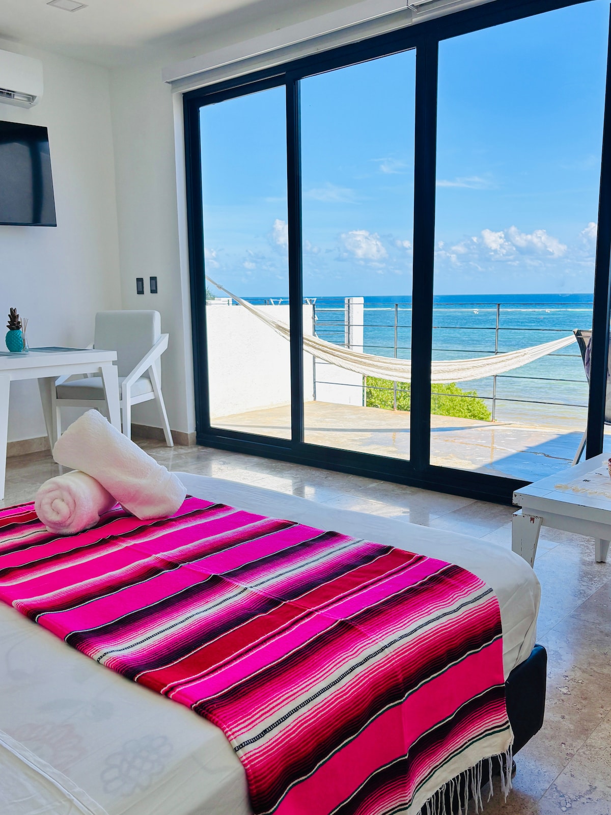 Disfruta de la mejor vista del mar de Mahahual en este increíble RoofTop. Despierta cada mañana con el sonido de las olas y una vista panorámica que se pierde en el horizonte. Disfruta de una experiencia única e inigualable al ver el amanecer desde tu habitación. No dejamos a un lado las comodidades de tu hogar con todo lo necesario para tus días de vacaciones. El mar esta al bajar de tu habitación, así como una hermosa alberca donde podrás refrescarte después de tus actividades en la playa.