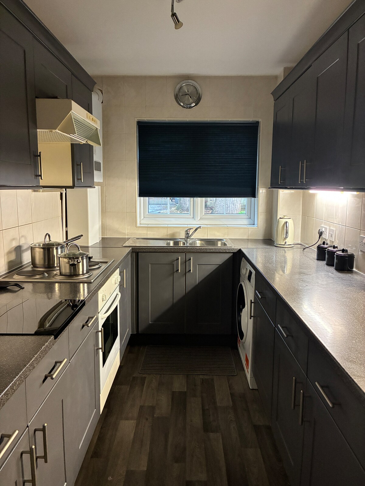 安靜的 2 臥室房源,配備加大雙人床,提供停車位,靠近車站