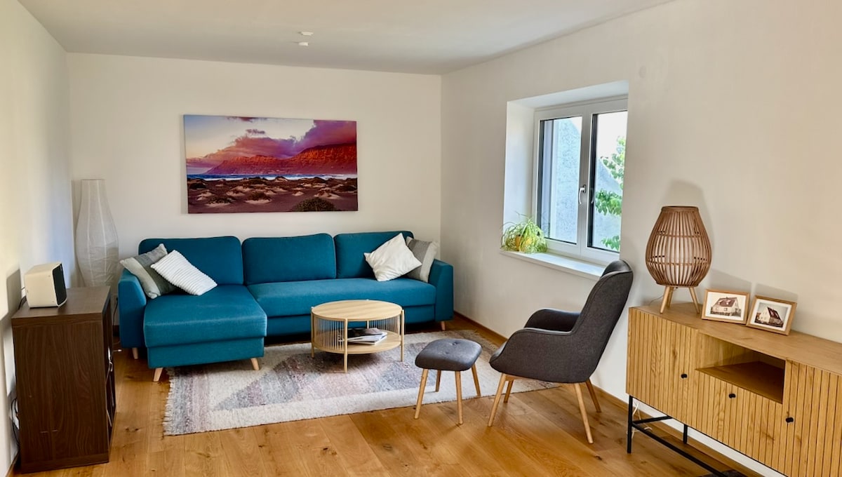 安靜且時尚的 1.5 間房公寓,- 位於市中心的公寓。您可以期待一個帶用餐區的現代廚房、一個帶落地淋浴的新浴室和一個明亮的客廳/臥室,配有平板電視、加大尺寸的箱式彈簧床和帶互聯網/W-Lan 的閱讀角。附近有超市、麵包店、糕點店、餐廳等。附設私人停車位,步行即可抵達前往法蘭克福展覽中心/中央火車站的直達電車。