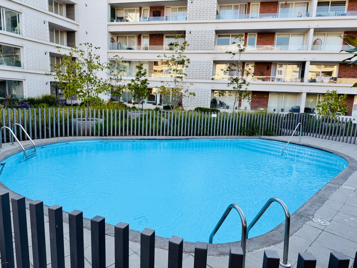 在這個安靜優雅的空間放鬆身心。 探索這間位於智利聖地牙哥的新公寓的舒適度。配有停車位,最多可容納 2 人。 有 1 間臥室、浴室、全功能廚房、露臺、5G WiFi、 55 吋電視。大樓提供泳池、健身房、燒烤區和自行車停放處。距離 EL PARRON 地鐵站僅幾步之遙。周圍有酒吧、24 小時營業的餐廳、藥店、超市和餐廳。 您的完美選擇