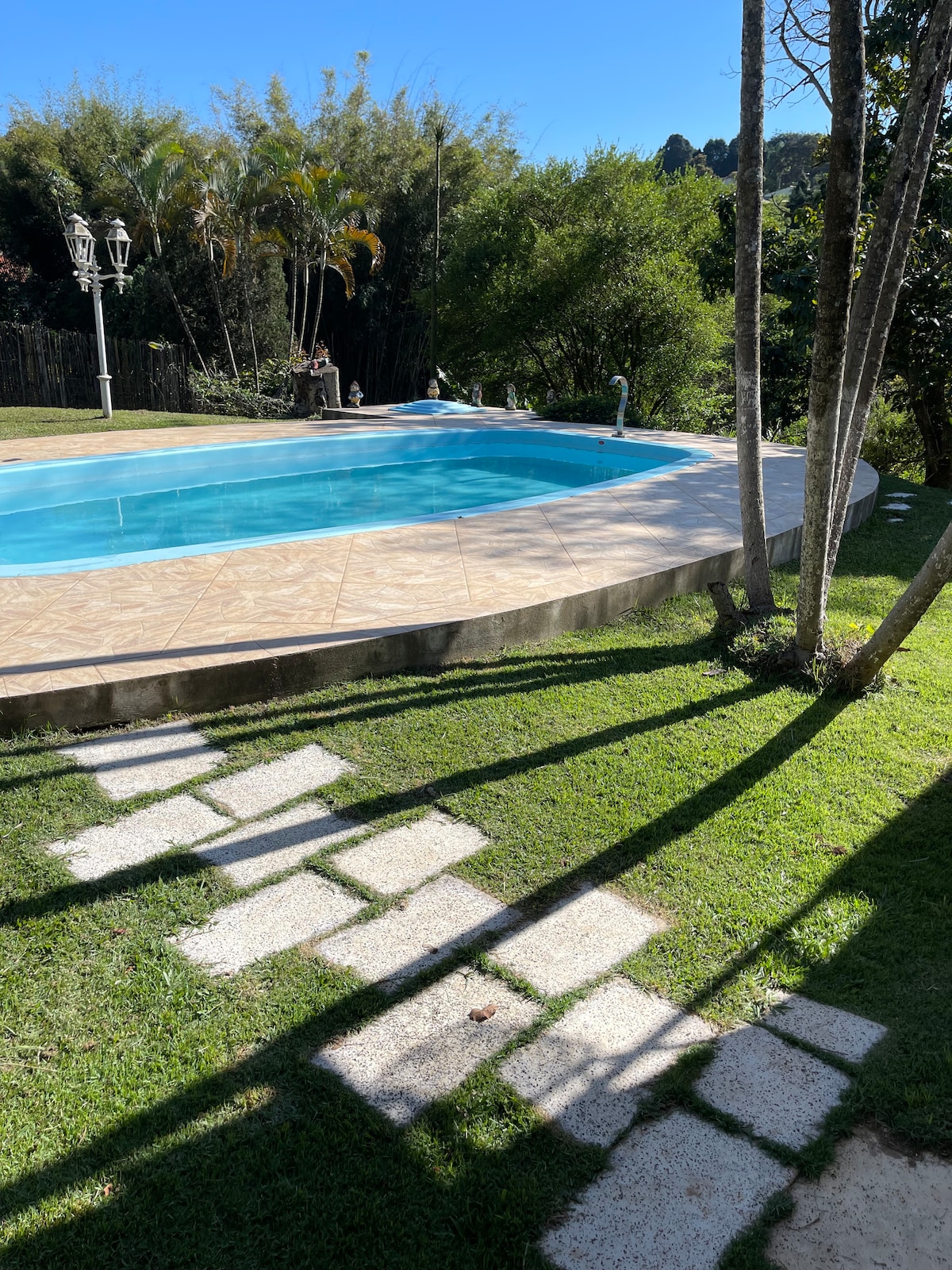 位於Mairinque的農場,距離SP 74公裏。 安全的地方,僅限房客使用空間,提供鑰匙的禮賓服務。 房子設備非常好,裝潢和設備齊全。 客廳配有壁爐、綜合廚房(鄉村和傳統)、04間臥室和3間浴室。 室外區域、美食空間、燒烤、木烤箱、櫃檯、帶水槽的櫃檯、冰箱和燃氣竈。 甲板、遊泳池、日光浴椅、淋浴間、草坪、20,000平方米的湖泊。帶漂浮甲板,允許運動釣魚,皮劃艇和站立。