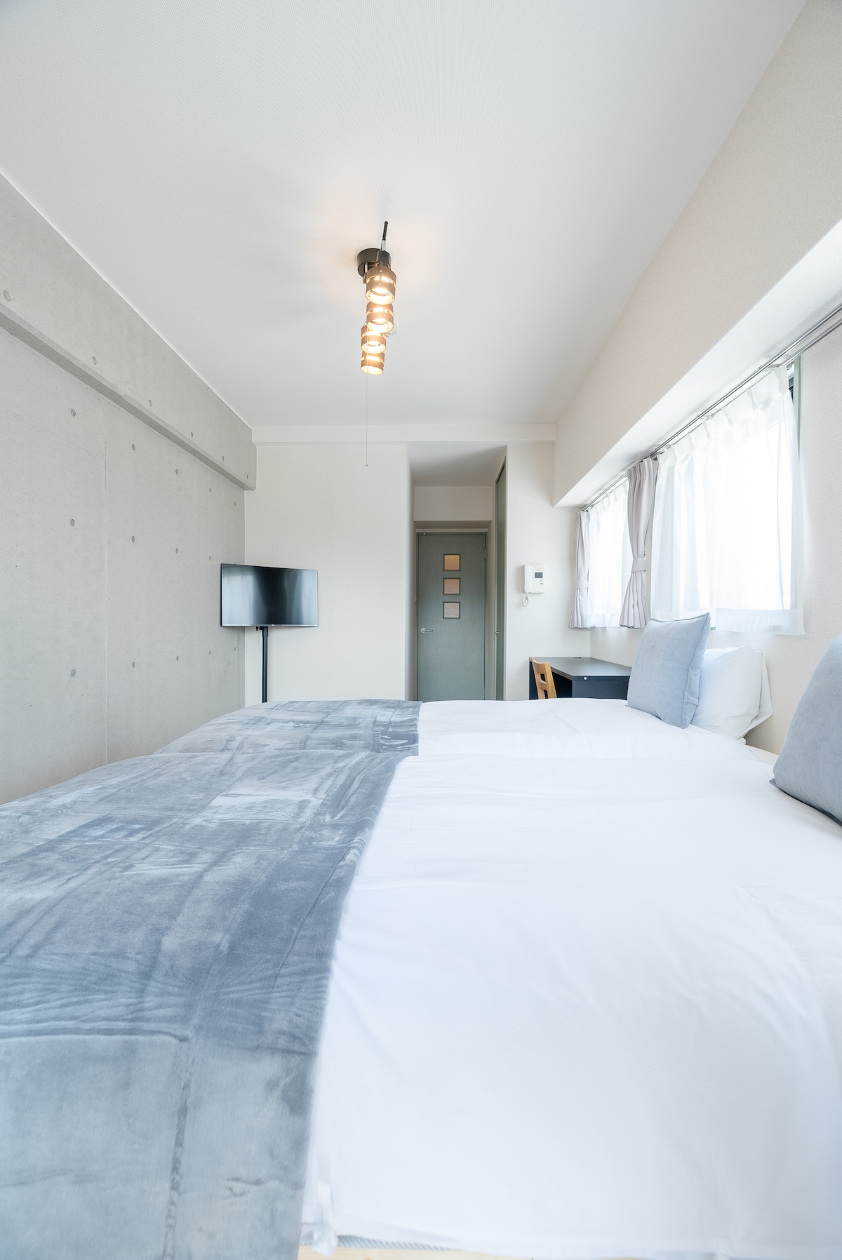 401号房(最多可入住4人)就在同一楼层。 如同时预订两个房间,最多可容纳9位客人,非常适合家庭或团体旅行! 如有需要,请随时联系我们。 ~Encounter Ohori 403~ 步行即可到达著名景点“大濠公园”,从地铁“大濠公园站”步行仅需6分钟,前往天神和福冈机场交通便利。 房间明亮整洁,配有上下铺和滑动式床,可容纳最多5人。 还配备投影仪,可与亲朋好友一起通过Netflix欣赏电影和喜爱的节目,享受“在家观影”的乐趣。 小阳台是享用晨间咖啡、深呼吸或安静阅读的理想场所。 虽然空间不大,但我们注重打造舒适放松的氛围。 房间内还配备洗烘一体机、Wi-Fi和厨房,非常适合长期入住或工作度假。