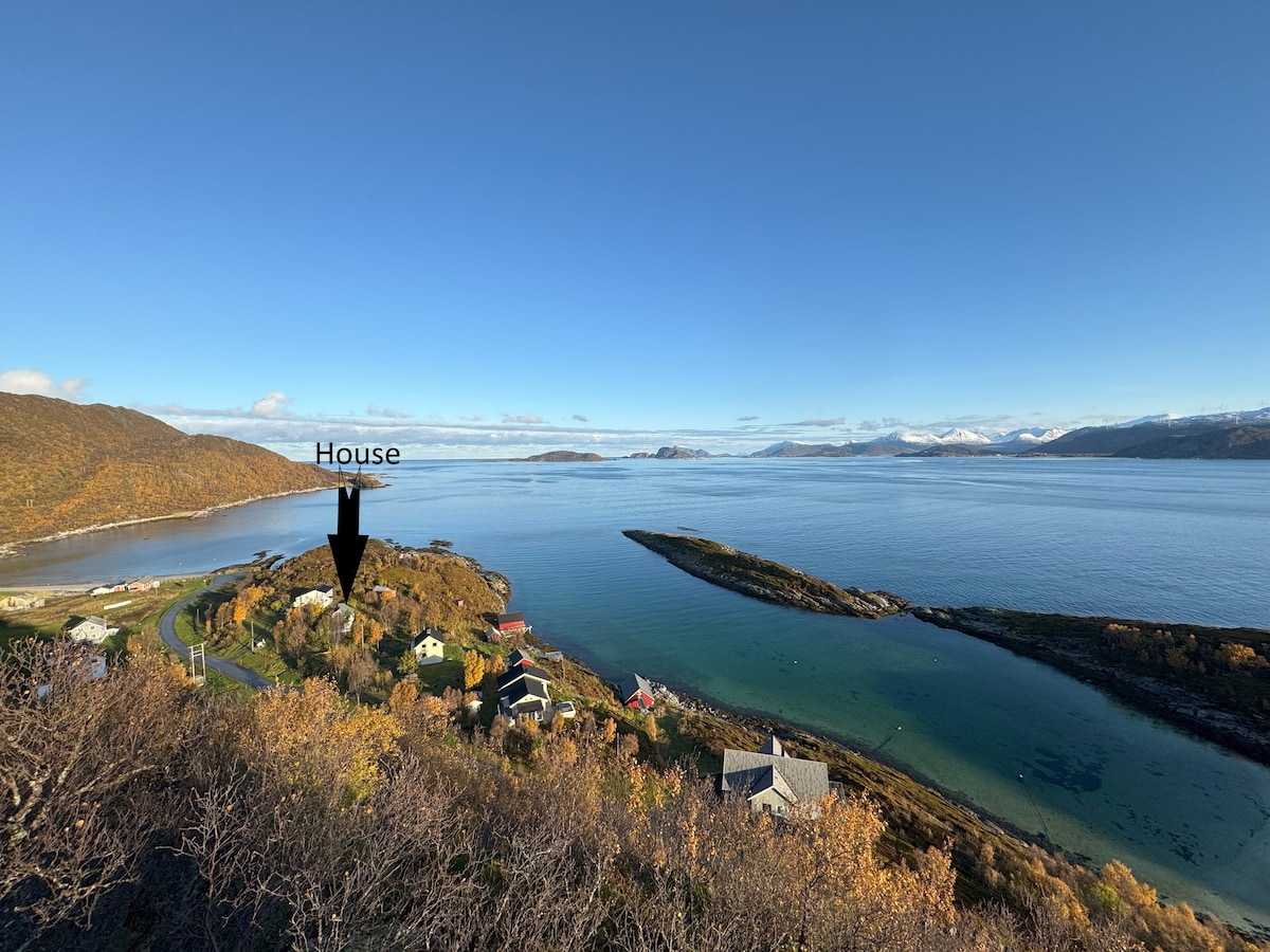 壯麗的新建房屋( 2018年) ,位於可愛、安靜的地區,可欣賞Kvaløya/Tromsø的峽灣/海、山脈和森林的美麗景色。 您可以從大窗戶( 10平方米)欣賞美麗的北極光/奧羅拉北極光,坐在客廳裡,手裡拿著一杯茶或咖啡: -)這裡非常適合想看北極光的遊客、冬季的峽灣鯨、在山裡徒步/滑雪或在這個可愛的城市裡想看的一切。