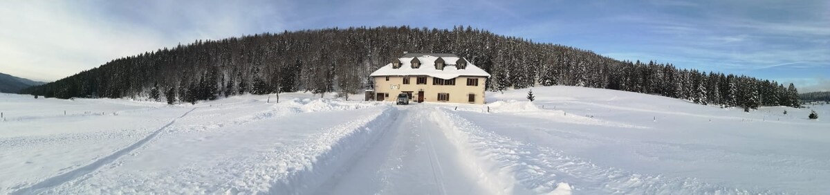 我們的家庭歡迎您來到我們的小木屋。整套住宿位於一樓。 小屋位於一個死胡同:交通最少,最安靜。 住宿溫馨舒適,並配有桑拿房。 房子位於格拉斯村 (Les Gras),步行 2-3 分鐘即可抵達便利商店。地理位置優越,適合在該地區遊玩。從村莊出發徒步旅行。越野滑雪道和雪鞋巡迴賽。山地自行車。GTJ。非常靠近瑞士。