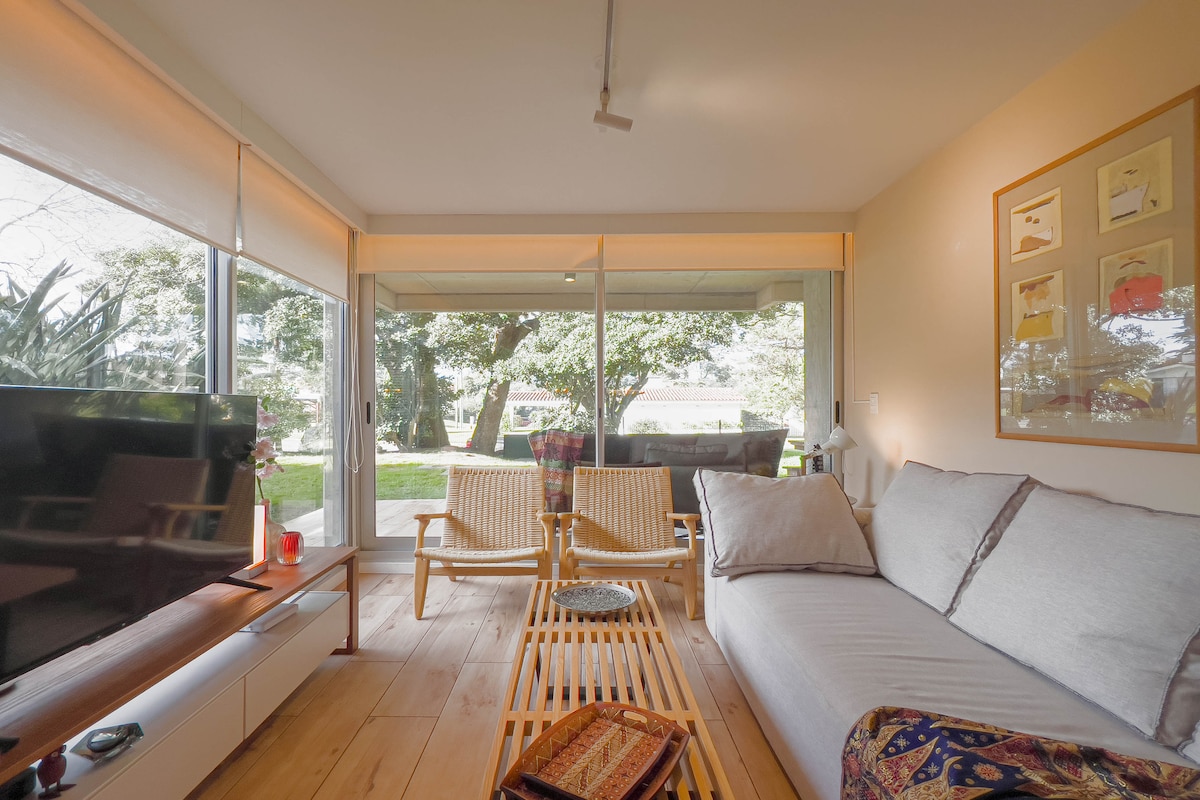 Quartier Punta Ballena 是位於埃斯特角城最好的海灣 Punta Ballena 的一個綜合設施。每天免費提供安全和清潔服務、設施和海邊、游泳池、按摩浴缸和健身房。非常適合家庭或浪漫度假。獨特、獨家、完整、舒適、愉快。從兩個私人畫廊可欣賞令人驚嘆的景色,家具齊全,配有獨立烤架,可通往綠色花園和花卉。私密性..設備齊全。彈性入住和退房。