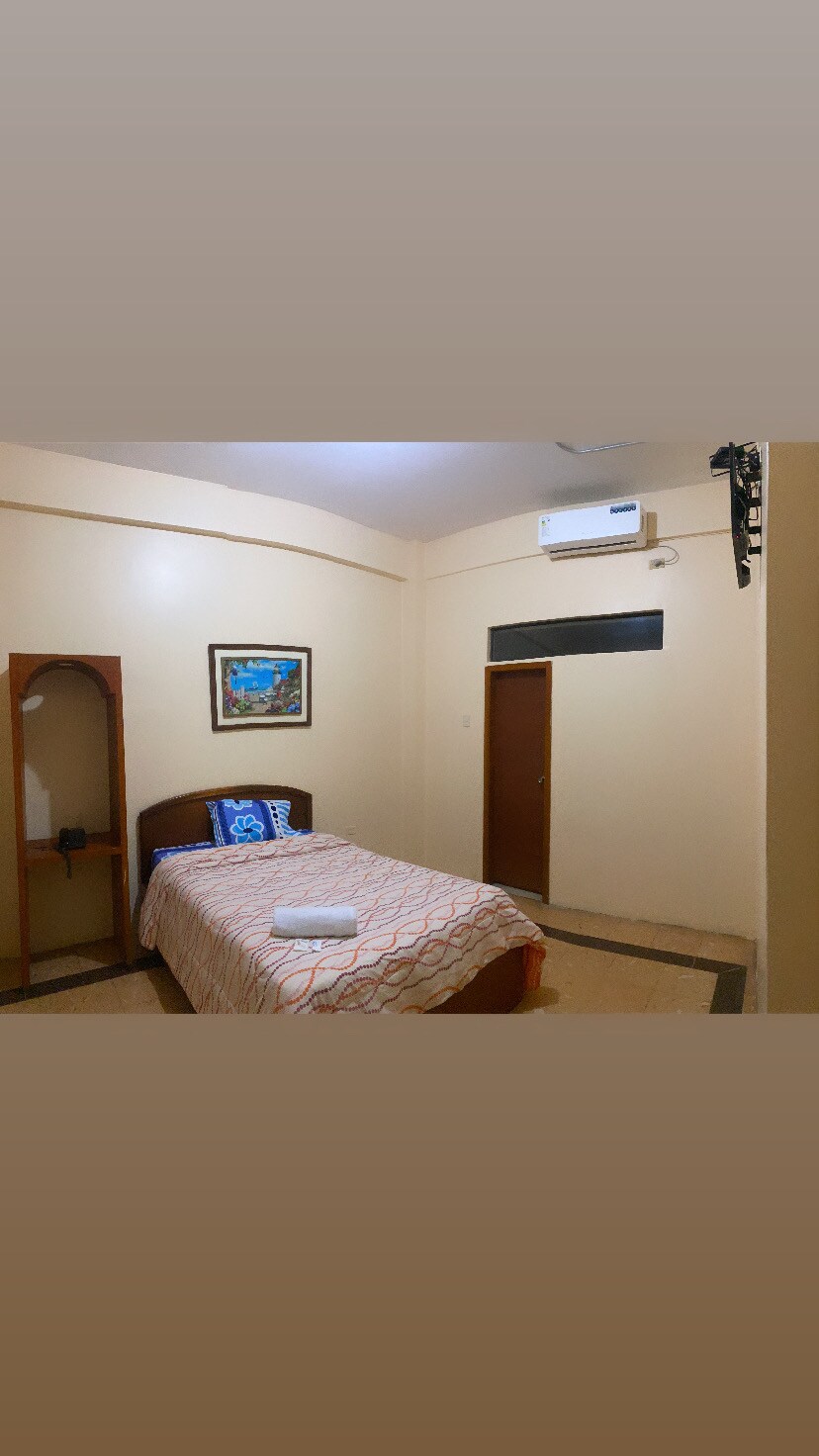 在瓜亞基爾市中心享受舒適的住宿體驗。我們的套房位置優越,靠近市中心主要景點,提供免費停車位,並有全天候24小時服務,隨時滿足您的各種需求。 我們重視待客之道,因此無論您是出差還是觀光,我們都會確保為您提供熱情、安全和便捷的體驗。