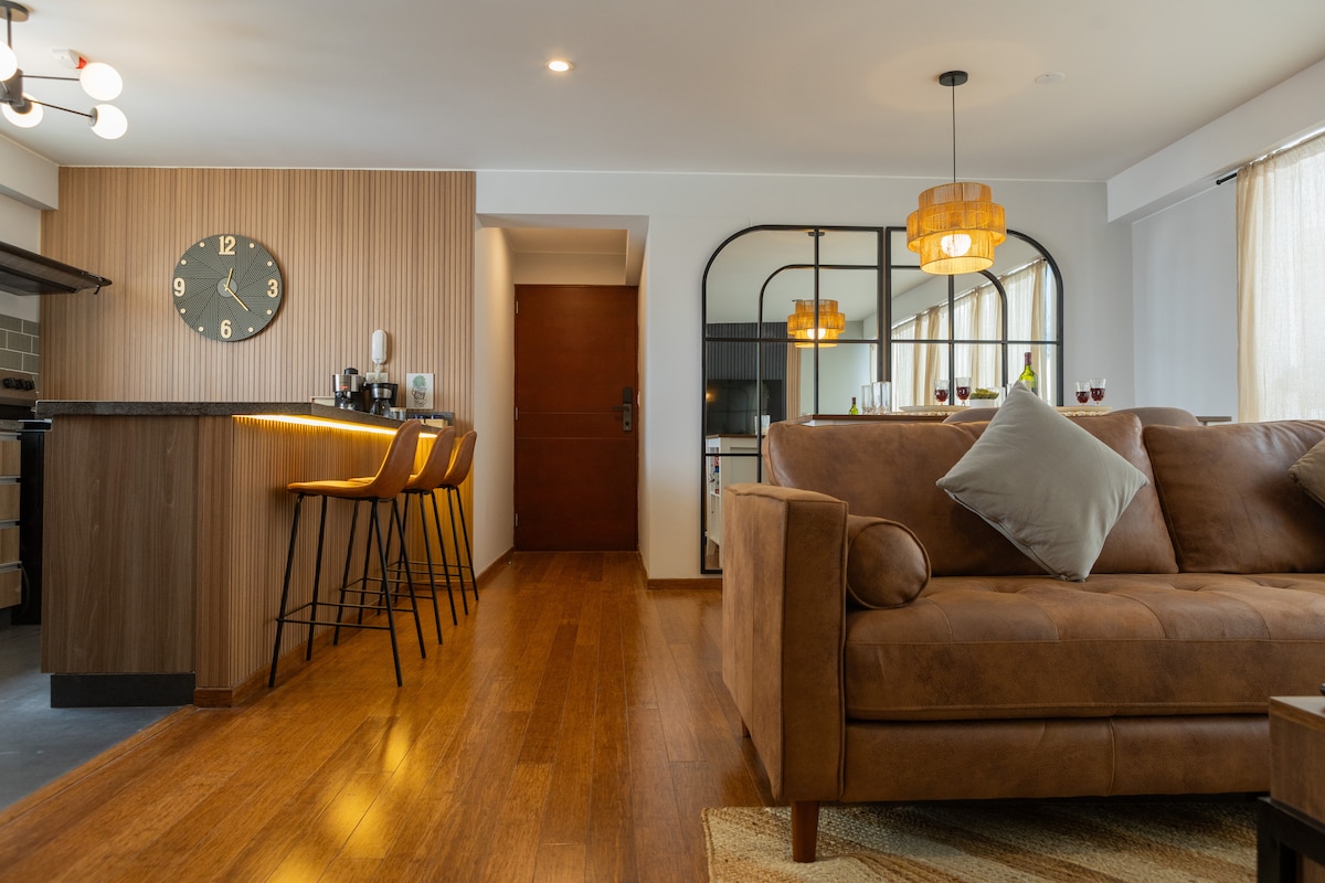 醒來時,即可欣賞開放式天際線景觀,距離米拉弗洛雷斯(Miraflores)市中心的肯尼迪公園(Kennedy Park)僅半個街區。 這間明亮的精品閣樓非常適合長期住宿和遠距工作。 整套公寓都有落地窗,可欣賞大道的景觀。 Diagonal、大樓的花園庭院和Miraflores天際線。 享受屋頂泳池、健身房、共同辦公、私人停車位、超快速Wi-Fi、自助入住和24小時接待服務,距離咖啡廳和利馬最好的餐廳僅幾步之遙。