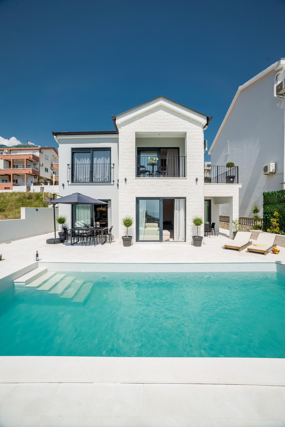 豪華住宿於一個老式家庭旅居,距離酒吧中心4.5公裏。您可以在15.000平方米的花園中享受正宗的地中海氛圍,種植的亞熱帶水果和橄欖樹,提供最大的隱私和寧靜。 Tai別墅配有私人無邊際泳池和90平方米的露臺,可欣賞令人難忘的亞得裏亞海景觀和城鎮景觀。 您有難得的機會喝泉水。 提供免費泊車位和視頻監視。