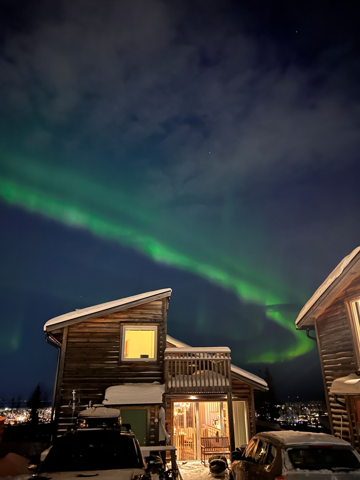 Slappna av i detta lugna boende.Här bor du i ett exklusivt, nybyggt timmerhus invid Torne älv.Boendet är i 2 plan och består av kök, stort badrum,stort allrum, 2 sovrum,SMART TV,skotork,stor uteplats både på neder-och övervåningen,uteplats vid älven.Fantastisk utsikt över Torne älv där du ser en blandning av NORRSKEN, skotrar,hundspann och vinterbadare.Det finns att boka vedeldad bastu och grillkåta, mot avgift.Gångavstånd till Icehotel,hembygdsgården, kyrkan och affär.Parkering utanför dörren.