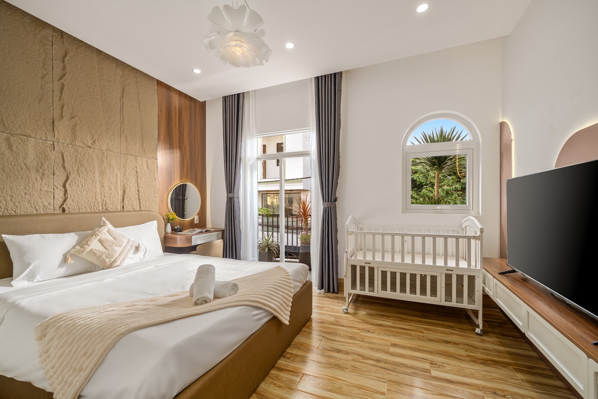 This luxurious apartment offers a separate bedroom and full kitchen, just 500m from My Khe Beach which is the perfect location for your getaway. The apartment is part of a sweet little 3-level villa. As part of its unique charm, you’ll find stairs instead of an elevator — a small detail that makes the villa feel even more homely and welcoming. With the slogan "May Home is where the heart is”, you’ll always feel warmly welcomed by our team, with a stay that’s comfortable and unforgettable.