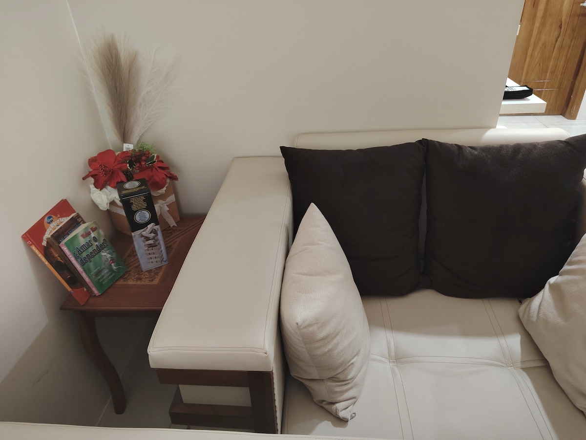 設備齊全的單間公寓,陽臺距離Ayampe海灘僅200米。 位於一棟美麗房屋的二樓,位於Ayampe的最佳位置,距離主要雜貨店、餐廳、公園、醫療中心僅一個街區。 非常適合單身旅客或情侶入住,配有標準雙人牀、廚房、智慧電視,非常明亮清爽。 我們也為初學者租用衝浪板
