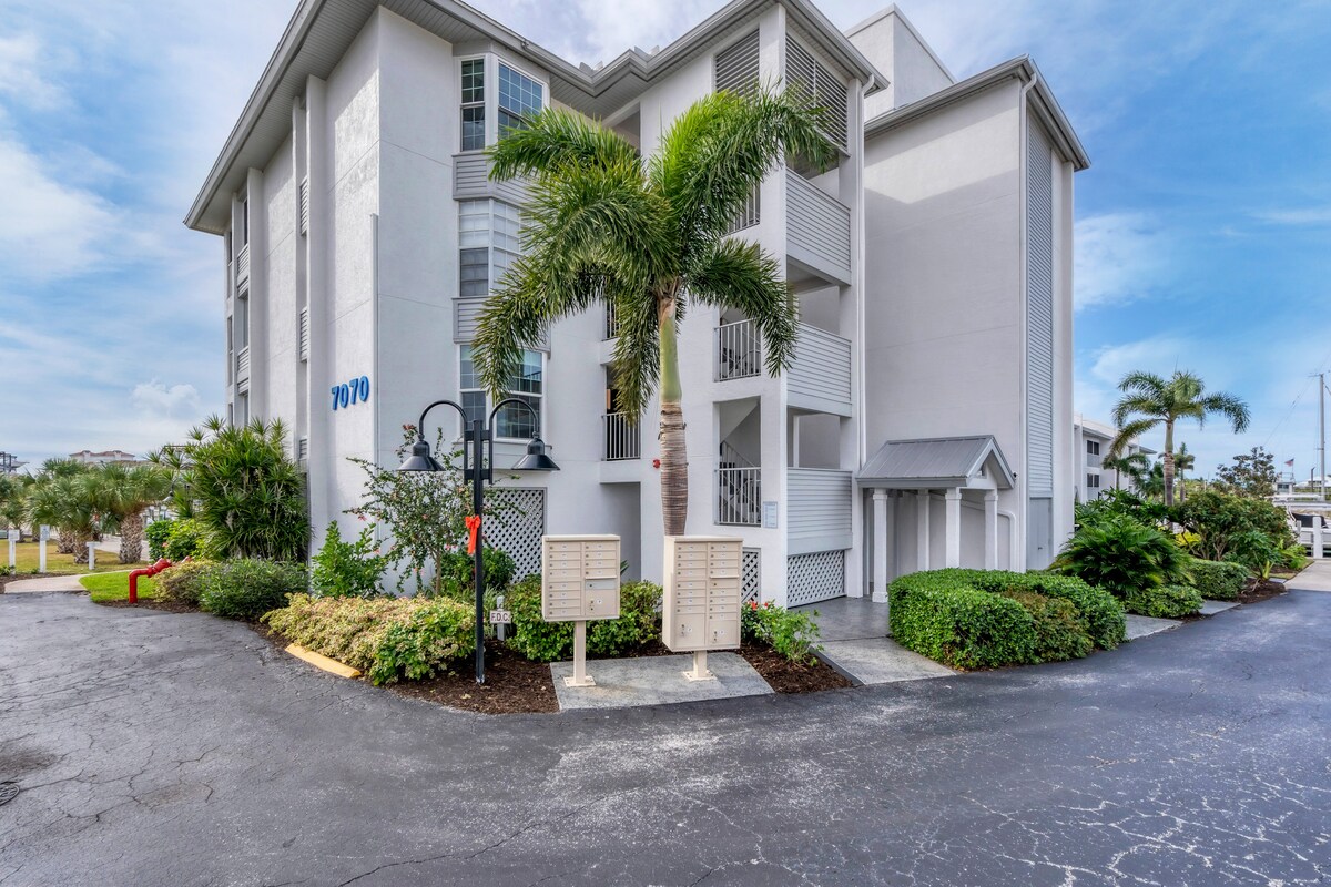 步行即可抵達島上所有景點。這間3間臥室2間浴室的海灣前公寓面積為1500平方英尺,採用開放式布局,大陽臺可擴展整個公寓。全尺寸洗衣機/烘乾機。主臥室和客房有一張加大雙人床,第三間臥室有兩套雙人床和雙層床。戶外廚房區域,配有烤架、提基酒吧和火坑。 有船?使用DockWa應用程式預訂您的船位。