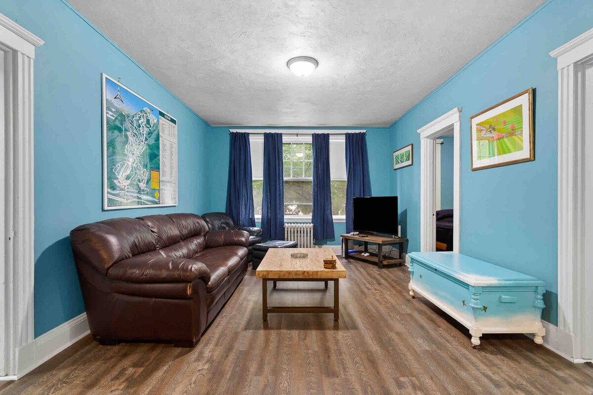 這間伊士曼公寓位於市中心,全年都可以享受戶外樂趣! 這間多層開放式概念房源可容納大家庭或三對情侶尋找秋季色彩之旅或滑雪度假。 下層設有遊戲室/電視房,配有舒適的沙發牀。 主樓層設有帶電視的客廳、可容納6人的餐桌和全套服務的廚房。 樓上有加大雙人牀臥室、全套浴室和舒適的閱讀角落。在這個舒適、光線充足的度假勝地中,新罕布什爾州的魅力環繞著您。