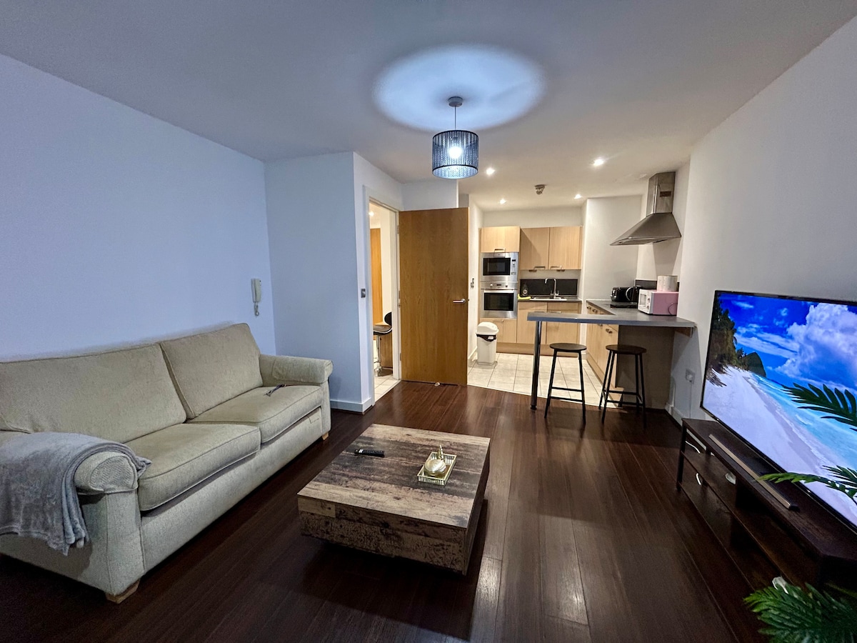 Modern one-bedroom retreat with a personal balcony, offering a comfortable blend of coziness and the polished ambiance of a luxury hotel. Just a short stroll from the vibrant spinningfields and central Manchester's shops and bars. Conveniently located near the AO arena and various transportation options, granting easy access to football stadiums and more. Special discounts offered for extended stays. Extra discount available for long stays, please ask for details.