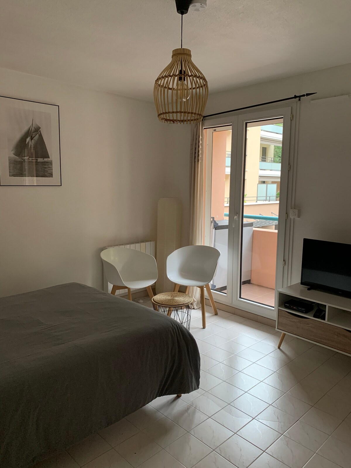 全新、非常時尚的公寓, 40平方公尺,華麗的露臺面積21平方公尺,配有室外家具。 公寓位於現代安全的住宅區,位於Guynemer大道。 靠近所有設施,因為它的理想位置: -距離Marche Forville 50公尺(新鮮水果、蔬菜、魚類、奶酪、花卉) -距離碼頭和舊城區3分鐘3分鐘 -距離Palais de Festival和海灘5分鐘 -距離幾家麵包店、商店和餐廳( Croisette、rue d 'Antibes ) 5分鐘路程