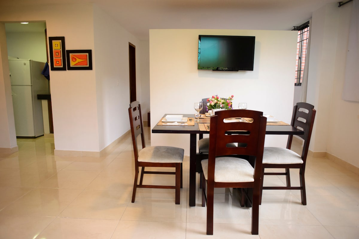 享受這個安靜舒適的住宿,位於馬尼薩萊斯歷史中心的獨家區域,距離玻利瓦廣場和大教堂僅兩個街區。全新舒適的公寓,配有私人停車位,並配備了所有設施,讓您享受您的住宿,游泳池、陽臺、1 張雙人床、1 張沙發床、智慧電視、設備齊全的廚房、洗衣機、熨斗等,為房客提供舒適的住宿體驗。